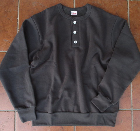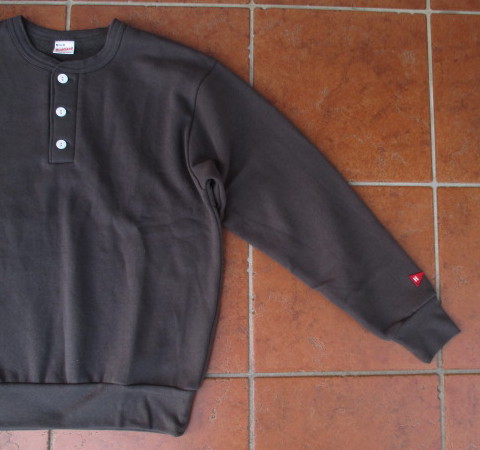 ヘルスニットの伝統でもある3つボタンのヘンリーネック仕上げのデザインを残したスエットで