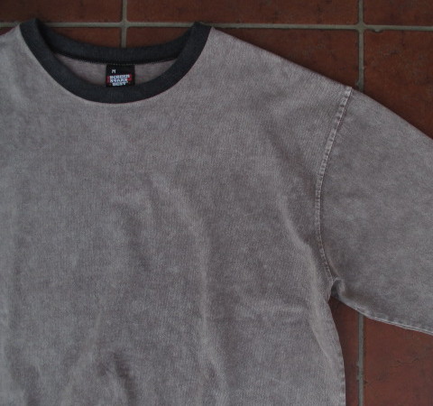 Tシャツ全体の仕上がりを着古したような擦れた味わいとムラ感を演出。