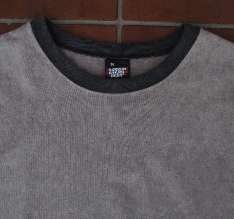 着回しの効くベーシックなデザインの「ロンT」ですが、全体のカラーを擦れた色合いにし、配色のリブ使い